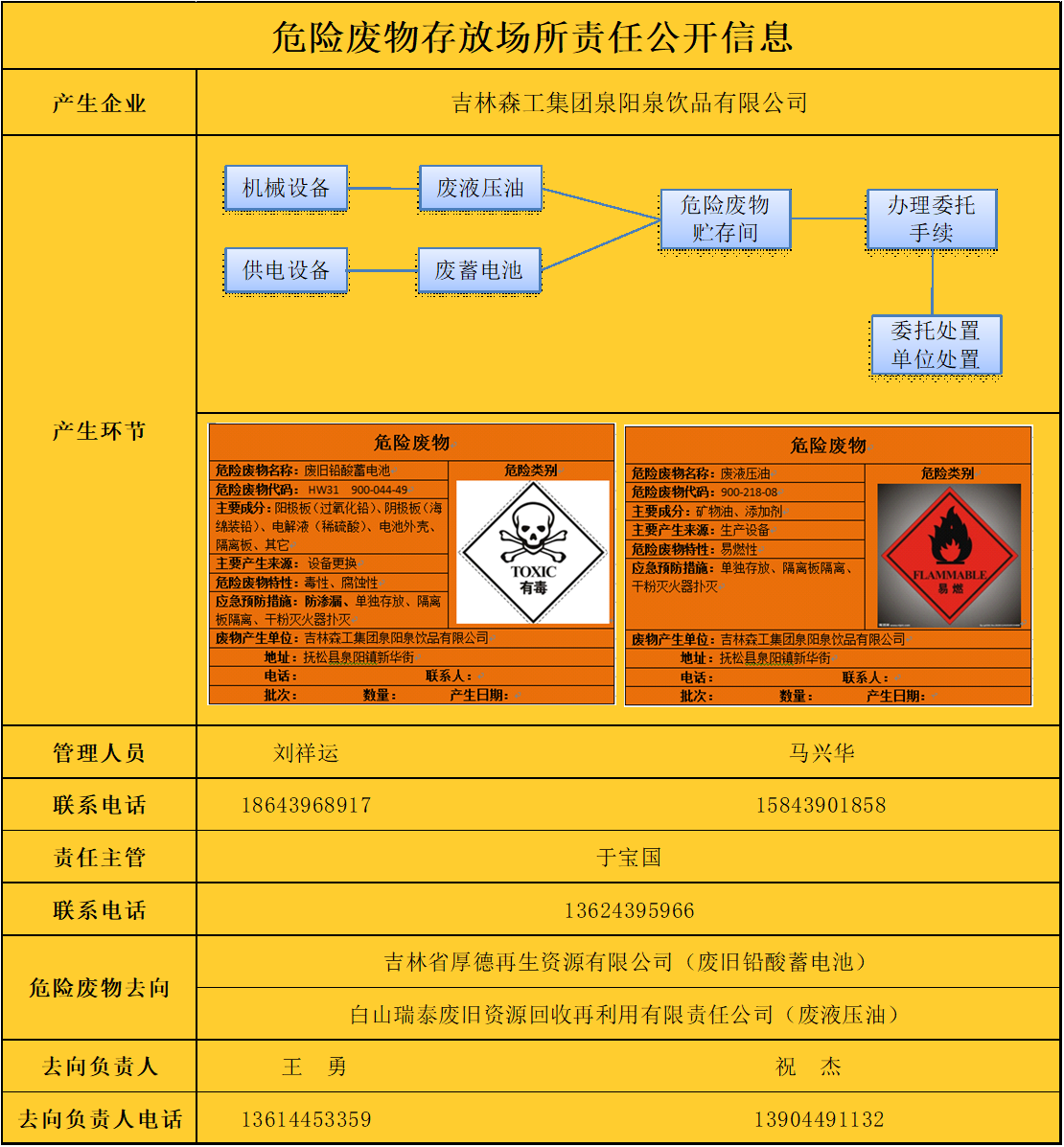 危險廢物存放場所責任公開信息表如下: